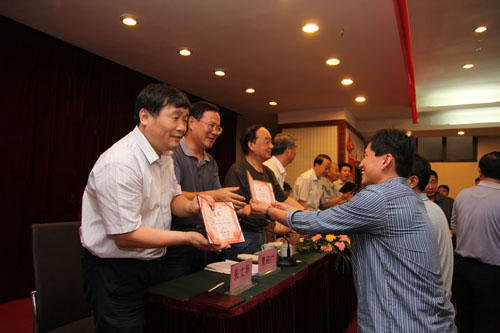 與會領(lǐng)導(dǎo)為獲獎人員頒發(fā)獲獎證書