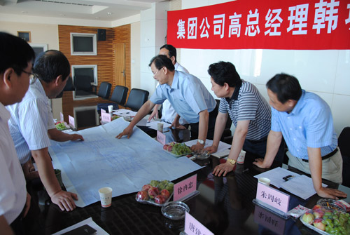 韓城礦業(yè)公司總經(jīng)理徐冉忠首先介紹了韓城礦業(yè)公司上半年生產(chǎn)經(jīng)營、生產(chǎn)布局調(diào)整、瓦斯治理及重點(diǎn)項(xiàng)目的進(jìn)展等情況。在聽取匯報(bào)后,集團(tuán)公司總經(jīng)理高仰才首先對(duì)韓城礦業(yè)公司近兩年的企業(yè)發(fā)展思路給予了高度評(píng)價(jià),特別對(duì)公司在瓦斯治理上取得的突破性進(jìn)展及瓦斯管理水平的提高給予了充分肯定。對(duì)照“韓城礦業(yè)公司三個(gè)礦井設(shè)計(jì)規(guī)劃圖”,高仰才詳細(xì)了解了公司三個(gè)生產(chǎn)礦井的生產(chǎn)布局、巷道布置等情況,并作重要指示。針對(duì)韓城礦業(yè)公司的重點(diǎn)工程項(xiàng)目建設(shè),他強(qiáng)調(diào),重點(diǎn)工程(包括瓦斯治理工程,綜掘、綜采、瓦斯抽放工程,安全技改項(xiàng)目及新上工程)項(xiàng)目的設(shè)計(jì),眼光要放長遠(yuǎn),設(shè)計(jì)理念要?jiǎng)?chuàng)新要超前;根據(jù)重點(diǎn)工程的項(xiàng)目類別,要明晰重點(diǎn)工程建設(shè)的投資渠道及資金來源,生產(chǎn)技術(shù)、計(jì)劃及財(cái)務(wù)等部門要相互協(xié)調(diào),保證重點(diǎn)工程建設(shè)資金到位。在此基礎(chǔ)上,重點(diǎn)工程的建設(shè)步子要加快進(jìn)行。