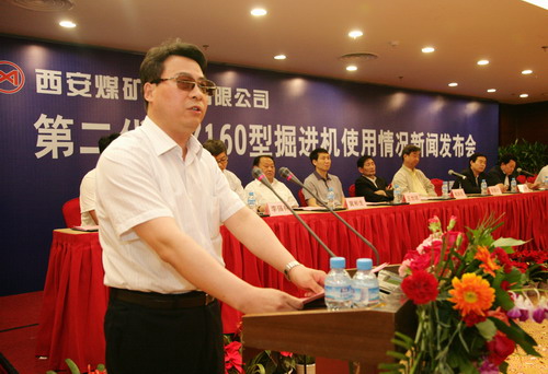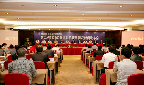 6月11日,西安煤礦機(jī)械有限公司在榆林舉行了第二代EBZ160型掘進(jìn)機(jī)產(chǎn)品使用情況新聞發(fā)布會(huì)。省煤炭工業(yè)局局長王雙明,省煤礦安全監(jiān)察局局長常天明,陜西煤業(yè)化工集團(tuán)副總經(jīng)理朱周岐,西安重工裝備制造集團(tuán)有限公司董事長王增強(qiáng),中能煤田董事長黃彬生及陜北礦業(yè)等40多家大型煤炭企業(yè)的領(lǐng)導(dǎo)和煤礦負(fù)責(zé)人共計(jì)120余人參加了會(huì)議。
