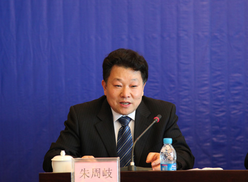 集團(tuán)公司副總經(jīng)理朱周岐代表集團(tuán)公司作2009年基本建設(shè)工作報(bào)告