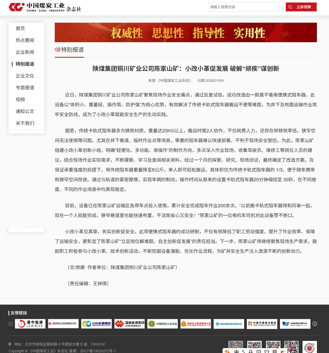 中國煤炭工業(yè)雜志| 陳家山礦:小改小革促發(fā)展 破解“頑疾”謀創(chuàng)新