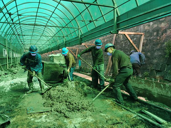 在施工過程中,該礦運輸區(qū)三班職工全力以赴、密切配合,積極領(lǐng)料、和灰、固定擋板,對回車線路的排水溝進(jìn)行清挖疏通。在領(lǐng)料間隙,職工穿著膠靴站在水溝中,利用木板、自制擋板衡量、固定出需要修葺的水溝位置。防汛物資運到原煤卸載點后,大家用廢舊皮子在軌道上鋪成一個臨時的和灰點,抓緊和灰、澆筑,再用鐵锨、膩子板,將所砌的水溝修理平整,然后將之前砌好后凝固的水溝擋板取下來,繼續(xù)往前固定、修葺,就這樣不停的重復(fù)著,一米一米的搶時間、趕進(jìn)度、提質(zhì)量,為原煤順利拉運提供可靠保障,確保雨季到來之際運輸線路暢通無阻。