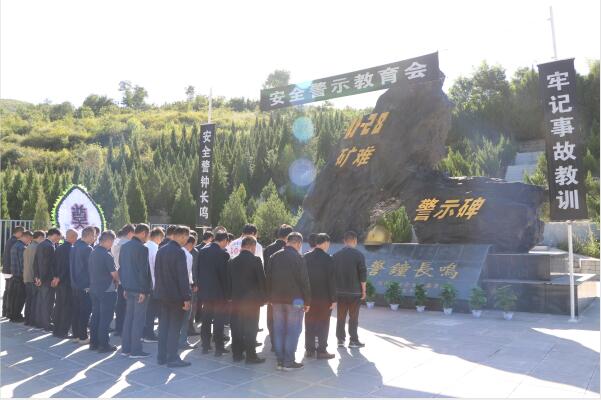 上午9時,在警示教育基地警示碑前,項目部管理人員代表向“11.28”礦難遇難職工敬獻了花圈,接受警示教育的干部職工懷著沉痛無比的心情面向警示碑默哀三分鐘,舉起右手進行了莊嚴安全宣誓,并繞警示碑一周,表達對遇難礦工兄弟的沉痛哀思。