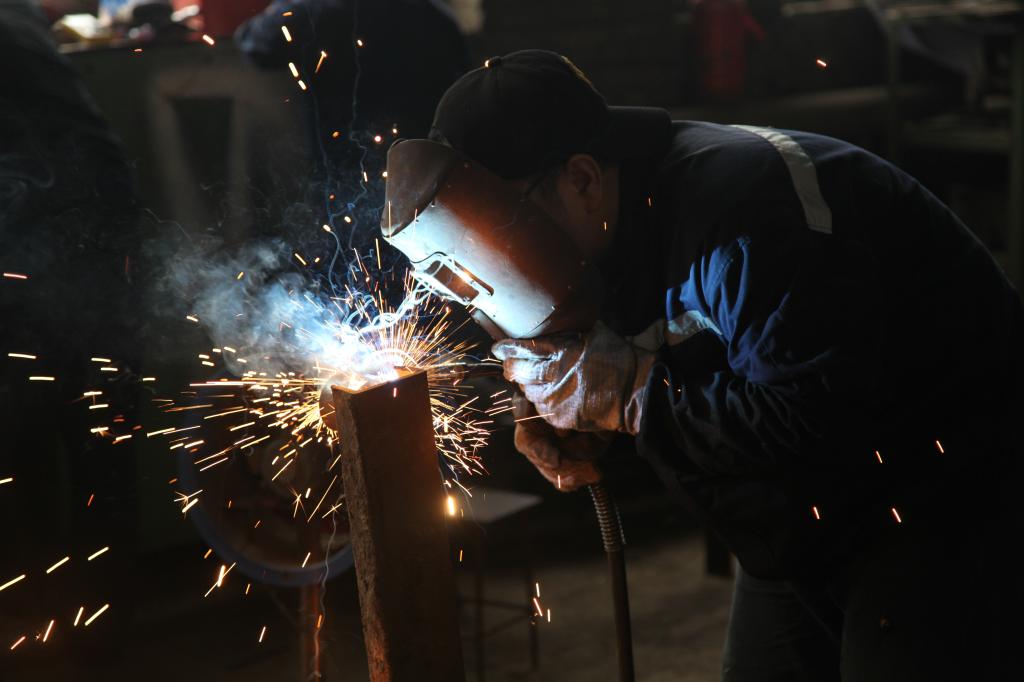 該公司大修分廠車(chē)間內(nèi)電焊工老張正在電焊施工作業(yè)