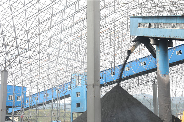 10月1日,氣溫驟降。儲煤場封閉項目施工現(xiàn)場,兩名施工人員“飛檐走壁”搭接支撐鋼梁。煤場內,鏟車轟鳴,“烏金”傾瀉而出。