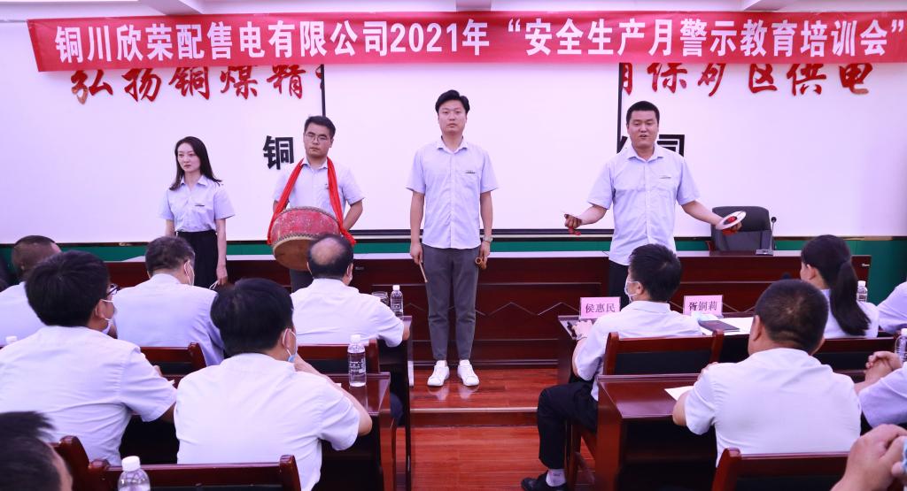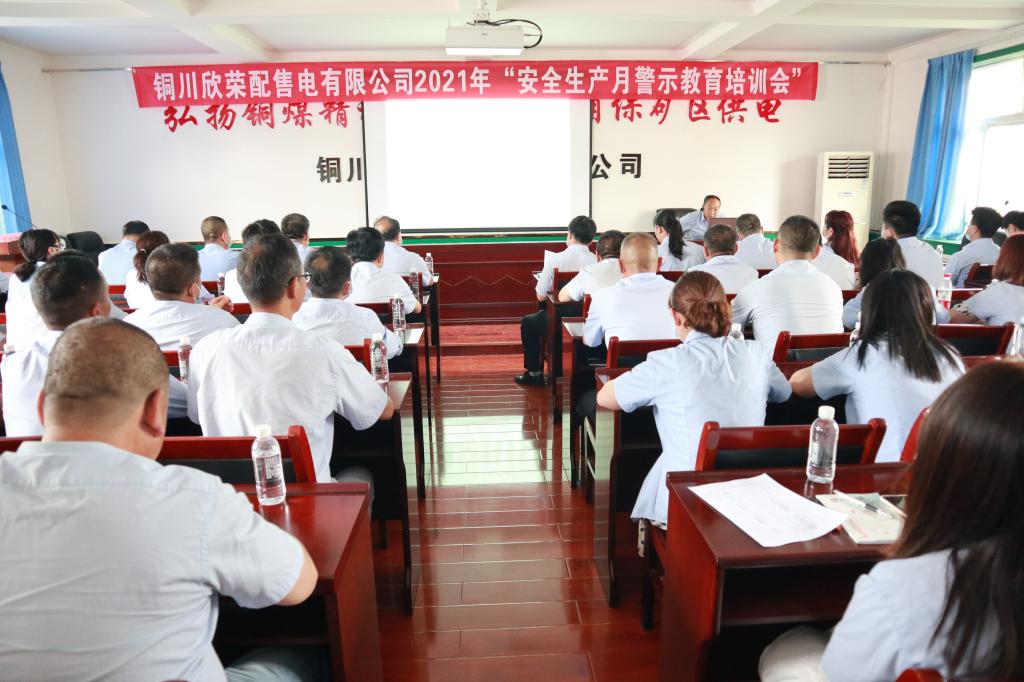 6月23日下午,欣榮配售電公司召開(kāi)2021年“安全生產(chǎn)月”警示教育培訓(xùn)會(huì)。并特邀虹橋分局、虹橋分局橋北派出所相關(guān)領(lǐng)導(dǎo)一同參加現(xiàn)場(chǎng)指導(dǎo),進(jìn)一步提高廣大干部職工安全意識(shí),筑牢安全根基。虹橋分局以及欣榮公司相關(guān)領(lǐng)導(dǎo)、欣榮公司安監(jiān)員等60余人參加了會(huì)議。