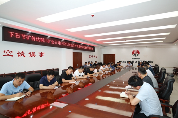 6月23日,下石節(jié)煤礦各級黨員干部齊聚一堂,深入傳達(dá)貫徹習(xí)近平總書記關(guān)于安全生產(chǎn)重要指示精神,嚴(yán)格落實(shí)中省、集團(tuán)公司安全工作專題部署要求,弘揚(yáng)安全理念,長鳴安全警鐘,上好安全“保險(xiǎn)”,保障電煤供應(yīng),喜迎黨的百年華誕。