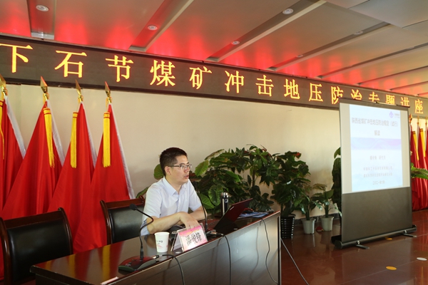 在講座過程中,潘俊鋒采取PPT演示+細致解讀的多媒體教學(xué)方式,堅持科學(xué)嚴謹、條理明細、客觀詳實的態(tài)度,結(jié)合煤礦沖擊地壓機理、監(jiān)測及防治技術(shù)為主題,從煤礦沖擊地壓發(fā)生形勢、陜西省沖擊地壓概況及特點、研究方案與計劃、《陜西省煤礦沖擊地壓防治規(guī)定(試行)》出臺背景、制度條款解讀等多個方面,為大家?guī)砹艘粓鋈谥贫冉庾x、專業(yè)創(chuàng)新、學(xué)踐結(jié)合、案例分析、難點探究用于一體的沖擊地壓防治專題講座,并借助沖擊地壓規(guī)律研究、制度出臺背景、典型案例進行科學(xué)分析,理論聯(lián)系實際,與參學(xué)人員進行了深入淺出的專業(yè)討論和溝通,搭建科學(xué)理論與實踐應(yīng)用的“橋梁”,為推動礦井沖擊地壓防治工作持續(xù)向好發(fā)展奠定良好基礎(chǔ)。