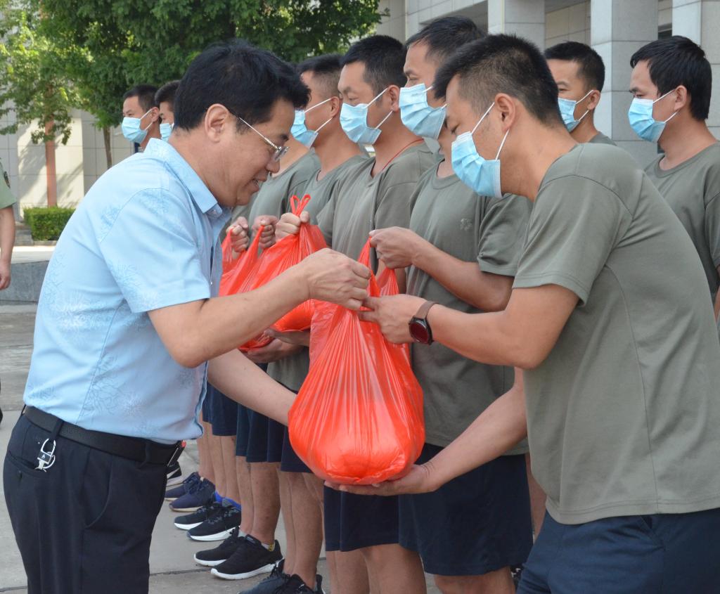 慰問中,康堯一行把礦泉水、西瓜、綠豆和白糖防暑降溫物品送到每一位指戰(zhàn)員手中,與他們深入交談,詳細(xì)詢問他們近期的工作和生活情況,并叮囑他們,在高溫情況下,一定要注意安全和身體健康,增強(qiáng)防暑降溫的自我保護(hù)和防范意識(shí),合理安排訓(xùn)練時(shí)間,確保平安度夏。同時(shí),也為指戰(zhàn)員們加油鼓勁,勉勵(lì)他們增強(qiáng)責(zé)任意識(shí),加強(qiáng)日常訓(xùn)練,不斷提升實(shí)戰(zhàn)能力、業(yè)務(wù)素質(zhì)和實(shí)戰(zhàn)水平。慰問結(jié)束后,康堯一行與大隊(duì)領(lǐng)導(dǎo)班子成員在大隊(duì)三樓調(diào)度會(huì)議室召開座談會(huì),就隊(duì)伍應(yīng)急值守、日常訓(xùn)練、疫情防控等方面進(jìn)行了座談交流。