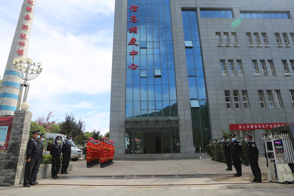 “報(bào)告,現(xiàn)在礦區(qū)降雨量不斷增大,局部地區(qū)地50毫米以上,工業(yè)廣場(chǎng)2#副斜井井口有被淹的危險(xiǎn)……” “立即啟動(dòng)《雨季“三防”應(yīng)急預(yù)案》,迅速通知應(yīng)急救援指揮部所有成員緊急集合待命。通知井下所有作業(yè)人員緊急有序撤離作業(yè)地點(diǎn),并沿避災(zāi)路線升井,安排人車接送?!?9月2日,一場(chǎng)防洪搶險(xiǎn)應(yīng)急演練在下石節(jié)煤礦信息化數(shù)字大樓四樓會(huì)議室進(jìn)行。