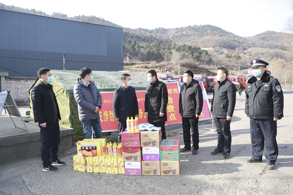 趙健一行來到礦區(qū)外疫情防控檢測點,現(xiàn)場查看了礦區(qū)疫情聯(lián)防聯(lián)控措施落實情況,關(guān)切地詢問礦區(qū)疫情防控工作部署、落實網(wǎng)格化管理、掃碼測溫登記、外來人員管控等疫情防控重點工作開展情況,并對堅守在疫情防控第一線的黨員干部職工表示親切慰問,為大家送上了餅干、方便面等食品,84消毒液、醫(yī)用口罩等慰問品,叮囑大家一定要做好個人防護,注意防寒保暖,守護防疫門戶,保障礦區(qū)平安。