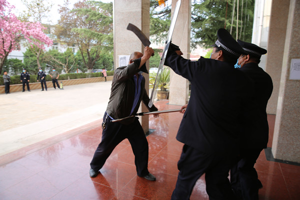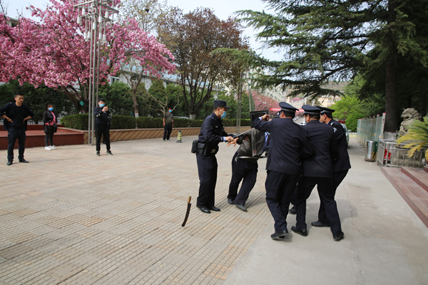 上午9時(shí),一名持刀“暴徒”欲強(qiáng)行突破該中心大門進(jìn)入辦公樓內(nèi)部實(shí)施破壞,被安保人員發(fā)現(xiàn)后立即阻止并向轄區(qū)派出所報(bào)警。接到報(bào)警,轄區(qū)派出所民警迅速出警,前往該中心辦公樓大門進(jìn)行支援。數(shù)分鐘后,轄區(qū)派出所民警全副武裝趕赴現(xiàn)場(chǎng)和安保人員合力將持刀“暴徒”擒獲。 演練歷時(shí)1小時(shí)左右,共出動(dòng)車輛1輛,參演人數(shù)10余人,各小組分工明確、行動(dòng)迅速、配合默契、處置得當(dāng),達(dá)到了演練預(yù)期效果。