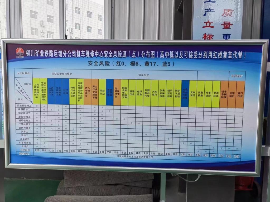 為提高全員安全生產(chǎn)意識(shí),加強(qiáng)安全生產(chǎn)管理,連日來(lái),鐵運(yùn)分公司通過(guò)安全風(fēng)險(xiǎn)評(píng)估、制作安全風(fēng)險(xiǎn)辨識(shí)卡和安全風(fēng)險(xiǎn)源(點(diǎn))分布圖,實(shí)現(xiàn)安全風(fēng)險(xiǎn)辨識(shí)全員參與和精準(zhǔn)管控。