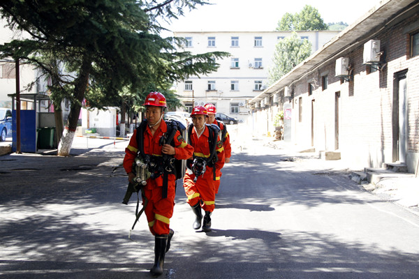 6月28日下午3時(shí),隨著總指揮的一聲令下,該礦一場(chǎng)滅火疏散逃生演練在礦單身公寓打響。