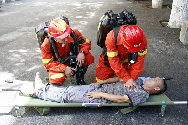 隨著單身公寓一名服務(wù)員的報(bào)警,單身公寓二樓15號(hào)房間發(fā)現(xiàn)煙霧,疑是著火,此時(shí)負(fù)責(zé)單身公寓負(fù)責(zé)人接警后,迅速向單位值班人員匯報(bào),同時(shí)向礦調(diào)度室匯報(bào),請(qǐng)盡快安排救護(hù)人員到單身公寓二樓救援,現(xiàn)場(chǎng)救援中,業(yè)務(wù)科室人員首先切斷電源,救護(hù)隊(duì)員在二樓搜救出五名職工,并攙扶五名施救人員,用毛巾捂著口鼻,迅速撤離至單身公寓外安全區(qū)域,一名救護(hù)隊(duì)員及時(shí)撲滅火源,一同撤離。此時(shí),單身公寓值班人員發(fā)現(xiàn)現(xiàn)場(chǎng)一名職工未及時(shí)撤離,兩名救護(hù)隊(duì)員迅速在單身公寓二樓及時(shí)發(fā)現(xiàn)一名職工,緊急攙扶一樓安全區(qū)域進(jìn)行心肺復(fù)蘇,一分鐘后,該職工蘇醒,立即送往醫(yī)院救治。