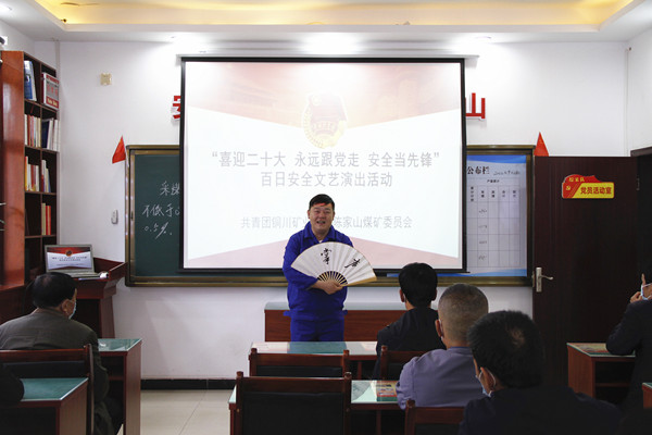 “行車(chē)規(guī)章不能少,安全運(yùn)輸才能保;雷管炸藥分兩家,兩者見(jiàn)面要爆發(fā)……”近日,在該礦綜采隊(duì)學(xué)習(xí)室,單口相聲《安全身邊人》讓大家的掌聲不斷,贊不絕口。這是礦團(tuán)委組織青年志愿者開(kāi)展文藝演出下區(qū)隊(duì)活動(dòng)。