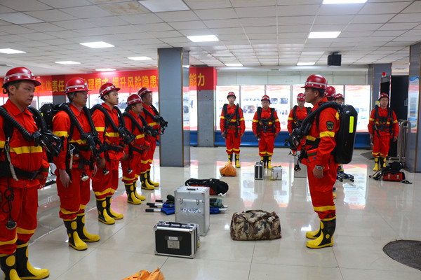 “救護(hù)隊(duì)員按照處置程序趕赴井下?!?/p>