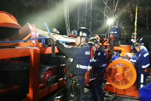 齊心協(xié)力,共克時艱。檢修當(dāng)天,隨著該礦調(diào)度指揮中心一聲令下,主運輸系統(tǒng)全面停機,檢修工作有條不紊的展開?,F(xiàn)場各級管理人員充分發(fā)揮模范帶頭作用,積極參與到檢修工作當(dāng)中,帶領(lǐng)職工嚴(yán)格落實各項安全技術(shù)措施,按照施工方案分別對膠帶輸送機驅(qū)動電機、減速機、張緊絞車、機頭桁架和2000米膠帶進行了更換,進一步提升了礦井主運輸系統(tǒng)的安全可靠性。