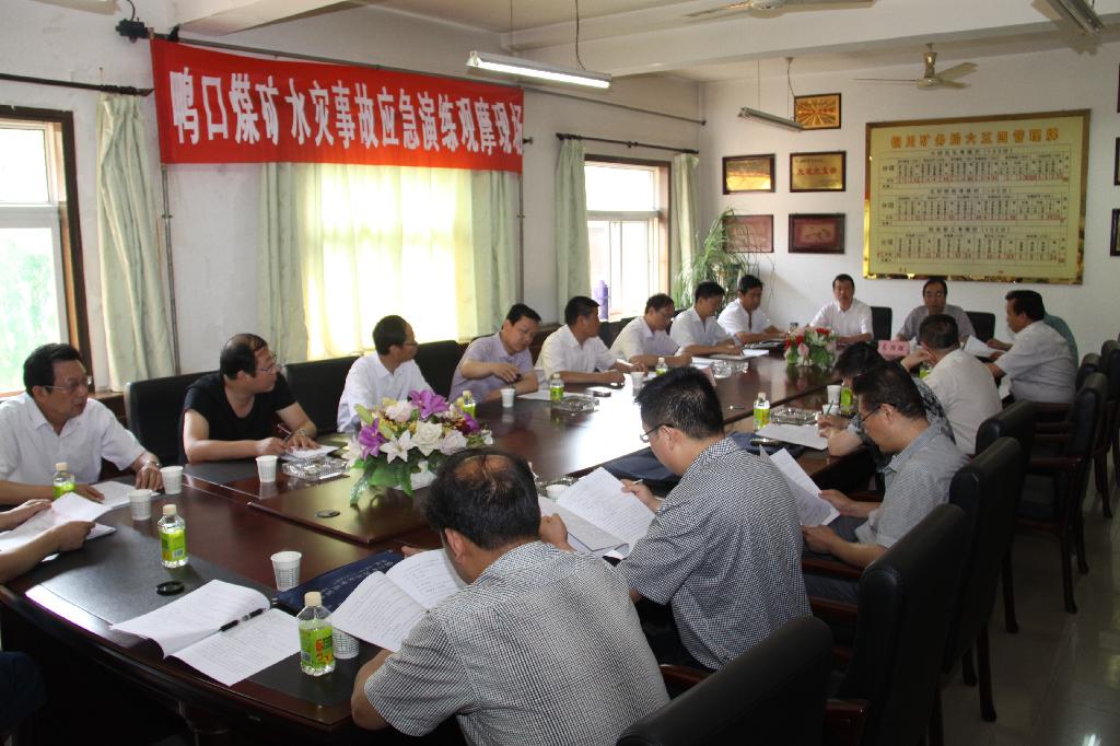 為認(rèn)真貫徹“安全第一、預(yù)防為主、綜合治理”的安全生產(chǎn)方針,規(guī)范礦井安全生產(chǎn)事故應(yīng)急管理和應(yīng)急響應(yīng)程序,提高礦井各應(yīng)急部門、機(jī)構(gòu)和人員之間的協(xié)調(diào)能力,增強(qiáng)職工應(yīng)對突發(fā)重大災(zāi)害的信心和能力,加強(qiáng)礦井整體應(yīng)急反應(yīng)能力,6月15日上午,鴨口公司舉辦了礦井水災(zāi)事故應(yīng)急演練。礦業(yè)公司各相關(guān)部室組成的觀摩組進(jìn)行了宣傳觀摩指導(dǎo)。