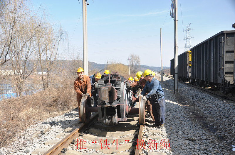 一路兵馬首先將職工們親切稱為“鐵牛”的牽引車上的鋼繩解下,眾人在熱火朝天的勞動號子鼓勁下,合力將成百斤的廢舊鋼繩拉到手推車上,回收至區(qū)隊。