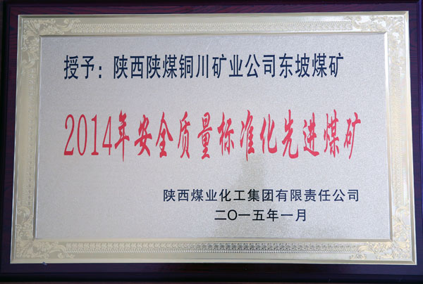 近日,在陜煤化集團(tuán)公司召開(kāi)的2015年安全工作會(huì)議上,東坡礦被授予陜煤化集團(tuán)2014年“安全質(zhì)量標(biāo)準(zhǔn)化先進(jìn)煤礦”稱號(hào)。