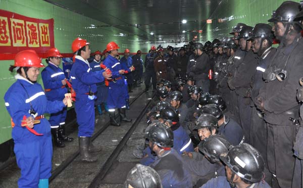 演出一開場,歌曲《好運來》、《祖國贊美詩》就引來了職工們的熱烈掌聲;該礦勞資科科長張社銀和他愛人合唱的《天邊的駱駝》將整場演出氣氛推向了巔峰,叫好聲、掌聲久久不能平息;群口快板《安全東坡竟風流》在說教聲中教育廣大職工生產(chǎn)不忘安全;礦工歌星楊國民一曲《火辣辣》將現(xiàn)場氣氛再次推向高潮,臺上臺下形成互動,演出節(jié)目一個比一個精彩,嘹亮、動聽的歌聲,歡快、悠揚的樂曲把現(xiàn)場職工帶入了歡樂的海洋。讓每位職工深深感到自己在千尺井下辛勤工作的同時,礦黨政關(guān)愛、家人的期盼每時每刻都在身邊,更使職工在愉快、歡樂的氛圍中接受了一次深刻的安全教育。綜采一隊職工李志民說:“演出太精彩了,感覺很溫暖,礦黨政把歡樂的歌聲,安全的囑托送到百米井下,為我們送來了祝福,我們非常感動,給我們一線工人增添了動力。今后,我們一定會遵章作業(yè),時刻不忘安全生產(chǎn),更好的做好本職工作,為礦井解危渡困做出自己的貢獻?!?/p>