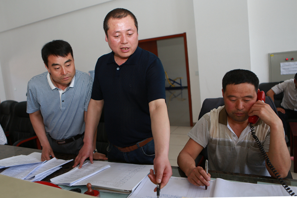 9時30分,演練正式開始。調(diào)度中心接到井下223工作面綜采隊跟班干部匯報,井下223工作面50#—80#支架頂板淋水增大,據(jù)觀測可能要發(fā)生大量涌水。調(diào)度員做好記錄后,隨即向值班主任、值班副礦長進行匯報,副礦長立即命令綜采隊跟班干部組織將工作面電源切斷,全部人員按避災路線迅速撤離到950避險硐室待命,并將這一情況向礦長做了匯報。礦長同意了現(xiàn)場處置措施,并指示通知地面領導和相關單位人員到信息調(diào)度中心集合。9時38分,所有人員陸續(xù)到信息調(diào)度中心后。根據(jù)井下反饋情況,礦長當即決定啟動井下水災應急處置預案啟動三級響應。將水情匯報公司總調(diào)度室,通知220和223工作面所有人員撤離至地面,安排救護隊下井探查223工作面水勢情況,醫(yī)護人員地面待命。立即成立搶險指揮部,指揮部設在礦信息調(diào)度中心,自己親任總指揮。