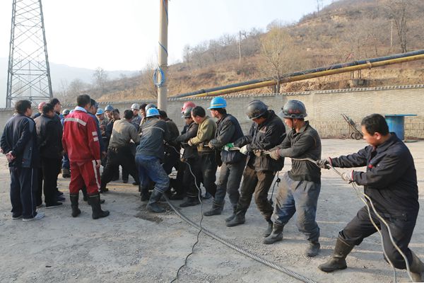 在二廣場(chǎng)工業(yè)廣場(chǎng)上,公司領(lǐng)導(dǎo)和該礦領(lǐng)導(dǎo)一行來(lái)到正在進(jìn)行更換鋼絲繩工作的干部職工中間,看到機(jī)電運(yùn)轉(zhuǎn)隊(duì)和掘進(jìn)一隊(duì)、掘進(jìn)二隊(duì)的廣大干群正熱火朝天、緊密配合的奮戰(zhàn)在更換鋼絲繩的戰(zhàn)斗第一線,主動(dòng)為他們送上慰問(wèn)品。并與奮戰(zhàn)在現(xiàn)場(chǎng)的部室跟班干部、區(qū)隊(duì)干部職工親切交談,詳細(xì)詢(xún)問(wèn)了更換鋼絲繩工作進(jìn)展情況,并囑咐大家要時(shí)刻把安全工作放在第一位,認(rèn)真組織好人力物力,細(xì)致做好每道工序,保質(zhì)保量完成工作任務(wù)。在更換的各項(xiàng)工作中,該礦分管領(lǐng)導(dǎo)現(xiàn)場(chǎng)跟班管理,區(qū)隊(duì)干部要認(rèn)真指揮,現(xiàn)場(chǎng)把關(guān)安全質(zhì)量,帶領(lǐng)施工人員嚴(yán)格按照措施要求實(shí)施各項(xiàng)作業(yè),參與更換鋼絲七十多名干部職工協(xié)同作戰(zhàn),充分發(fā)揚(yáng)煤礦工人特別能吃苦、特別能戰(zhàn)斗、特別能奉獻(xiàn)的優(yōu)良作風(fēng),克服人員緊張、施工條件受限、戰(zhàn)線長(zhǎng)等不利因素,緊密配合,在安全的前提下,有條不紊的推進(jìn)工作進(jìn)度,全力以赴掃清運(yùn)輸安全隱患問(wèn)題,保障礦井原煤拉運(yùn)工作不受影響,為礦井安全生產(chǎn)奠定堅(jiān)實(shí)基礎(chǔ)。