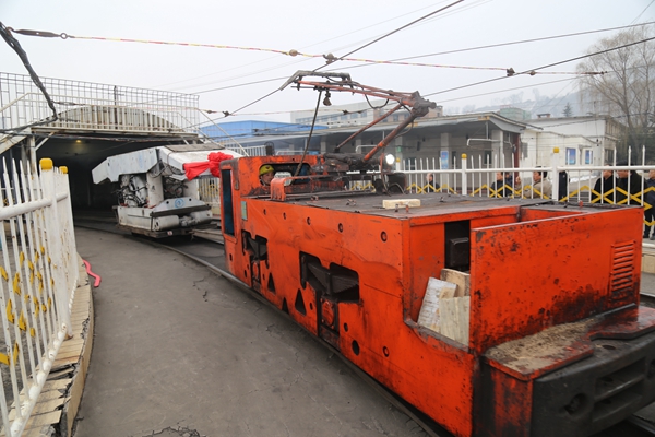 2月13日早上9點(diǎn),在陳家山煤礦井口車場(chǎng),9輛裝好綜采液壓支架的電機(jī)車整齊地排成一列,猶如一支接受檢閱、即將投入戰(zhàn)斗的裝甲特種部隊(duì)。隨著指揮員一聲指令,一輛輛電機(jī)車頭牽引著裝有液壓支架的平板車緩緩地駛?cè)肫巾暇冢瑯?biāo)志著該礦419綜采工作面支架正式進(jìn)入安裝階段。