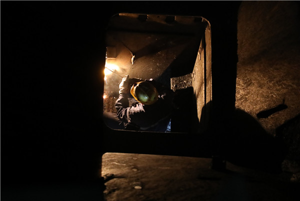 井巷中,傳來(lái)陣陣“一二、嘿喲……”的號(hào)子聲,打破了一片寧?kù)o,機(jī)電車間職工抬起管路步伐有力堅(jiān)定。綜采隊(duì)職工迅速就位,按照技術(shù)要求拆卸裝置,一二部膠帶進(jìn)行合并。主斜井機(jī)尾處,運(yùn)轉(zhuǎn)隊(duì)職工為膠帶上夾板硫化9#接頭。南風(fēng)井儲(chǔ)水池內(nèi),職工穿上防水服疏通管路。螺旋篩倉(cāng)里,職工正在使用氧焊修復(fù)襯板。一時(shí)間從井下到地面,檢修的旋律瞬間奏響。
