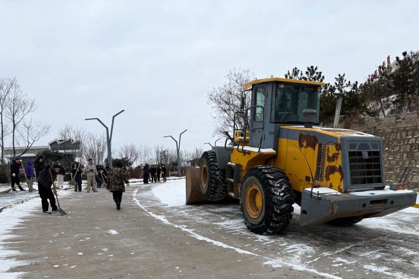 掃雪現(xiàn)場分工明確、協(xié)作有序,一幅同心戰(zhàn)雪的暖心畫面徐徐展開。針對部分路段積雪較深、人工清掃難度大的問題,公司靈活調(diào)配清掃設(shè)備,采取“機(jī)械開路、人工細(xì)化”的模式,大幅提升了掃雪除冰效率。經(jīng)過數(shù)小時(shí)的連續(xù)奮戰(zhàn),原本被積雪覆蓋的景區(qū)道路、步道、平臺(tái)全部清掃完畢。