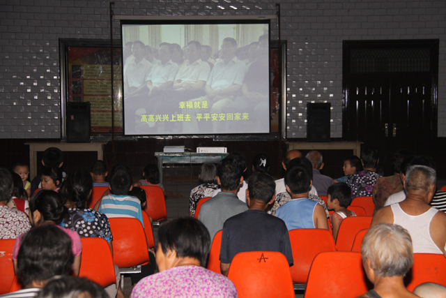 為切實(shí)搞好本次消夏納涼電影周活動(dòng),切實(shí)加強(qiáng)安全生產(chǎn)宣傳教育,增強(qiáng)廣大員工的安全法規(guī)意識(shí)和安全文明意識(shí) ,教育員工珍愛(ài)生命、拒絕違章,嚴(yán)防各類事故,爭(zhēng)做安全本質(zhì)人,該公司結(jié)合自身實(shí)際對(duì)所放影片進(jìn)行了認(rèn)真選排,并創(chuàng)新工作方式,在2部影片中插播本礦自己錄制的安全活動(dòng)影片,以便達(dá)到寓教于樂(lè)的目的。圖為:鴨口公司員工家屬認(rèn)真觀看該公司自己錄制的安全活動(dòng)影片 。
