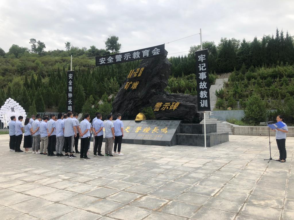 全體人員來到礦難警示碑前,向遇難礦工敬獻花圈,全體人員默然肅立,懷著沉重的心情面向警示紀念碑默哀,表達對遇難礦工深切的哀思,并在警示碑前進行了莊嚴的安全宣誓。隨后,全體人員繞紀念碑一周,緬懷紀念遇難礦工,汲取安全事故教訓。