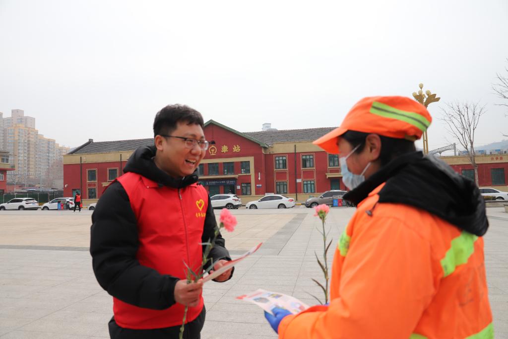 活動(dòng)當(dāng)天,團(tuán)員青年們?cè)缭鐏?lái)到火車站,身著整齊的志愿者服裝,手持宣傳資料和鮮花,精神抖擻地投入到宣傳工作中。他們穿梭在銅川火車站的站前廣場(chǎng),向來(lái)往行人及旅客們發(fā)放文明出行倡議書及鐵路沿線安全宣傳單,并耐心講解鐵路沿線安全知識(shí),如禁止在鐵路周邊放置障礙物、愛(ài)護(hù)公共環(huán)境、美化環(huán)境衛(wèi)生等內(nèi)容。活動(dòng)過(guò)程中,每當(dāng)遞出宣傳單,便會(huì)送上一支康乃馨,手中的康乃馨傳遞著溫暖,讓宣傳氛圍更加溫馨。針對(duì)一些小朋友和老年人,志愿者們更是用通俗易懂的語(yǔ)言和生動(dòng)形象的案例,進(jìn)行詳細(xì)的安全科普,讓大家深刻認(rèn)識(shí)到保障鐵路安全及愛(ài)護(hù)公共環(huán)境的重要性。
