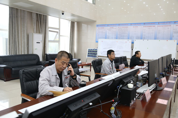 10月1日,在陳家山煤礦調(diào)度信息中心大廳,薛維平一手拿著電話聽筒接聽,一手在工作簿上迅速記錄接聽內(nèi)容。