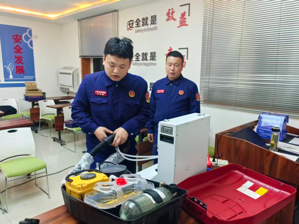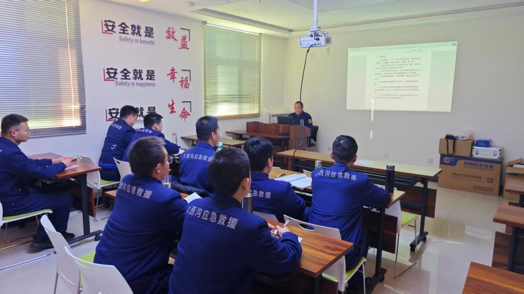 實(shí)操訓(xùn)練以“練為戰(zhàn)、戰(zhàn)必勝”為目標(biāo),幫扶隊(duì)員手把手教學(xué),重點(diǎn)培訓(xùn)蘇生器、瓦斯檢定儀等裝備操作技巧,強(qiáng)化團(tuán)隊(duì)協(xié)作默契,實(shí)現(xiàn)“體能與技能”雙提升。期間,幫扶小隊(duì)嚴(yán)格執(zhí)行24小時(shí)應(yīng)急值守制度,隨時(shí)響應(yīng)各類突發(fā)情況,同步協(xié)助大西溝礦完善應(yīng)急救援預(yù)案、優(yōu)化安全管理制度。