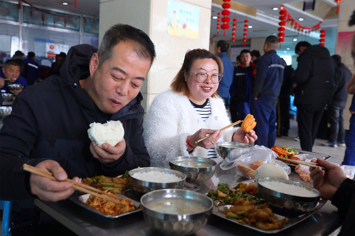 從熱氣騰騰的主食到風(fēng)味各異的配菜,從精心調(diào)制的湯羹到新鮮可口的水果,當(dāng)蒸碗、炸食、熱菜涼菜、水果湯羹端上餐桌,每一道菜品飽含著來(lái)自礦井對(duì)職工的新年祝福與安全叮囑。