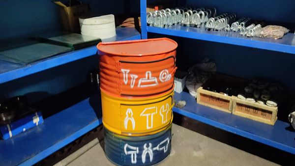 走進(jìn)運(yùn)輸區(qū)檢修車間,原來擺放在工具架上的工具被整整齊齊的收納進(jìn)舊油桶改造的環(huán)保工具箱內(nèi),分層分類存放,既便于管理,又節(jié)約成本投入,成為了檢修車間里的 “效率擔(dān)當(dāng)”。而這個看似簡單的工具桶改造,實(shí)則是運(yùn)輸區(qū)管理干部和技術(shù)人員對工具管理和工作流程的進(jìn)一步深度優(yōu)化。運(yùn)輸區(qū)區(qū)長苗長珍作為小改小革帶頭人,直擊工具存放易亂和損壞“痛點(diǎn)”,與大家一起集思廣益,設(shè)計(jì)更符合工作實(shí)際的環(huán)保工具箱,并就地取材,利用舊油桶設(shè)置分層功能區(qū),加工滾動轉(zhuǎn)盤便于工具拿取,并在制作過程中不斷優(yōu)化、調(diào)整、刷漆,將制作好的環(huán)保工具桶投放在充電硐室和檢修車間等地,收到了領(lǐng)導(dǎo)和職工的一致點(diǎn)贊。