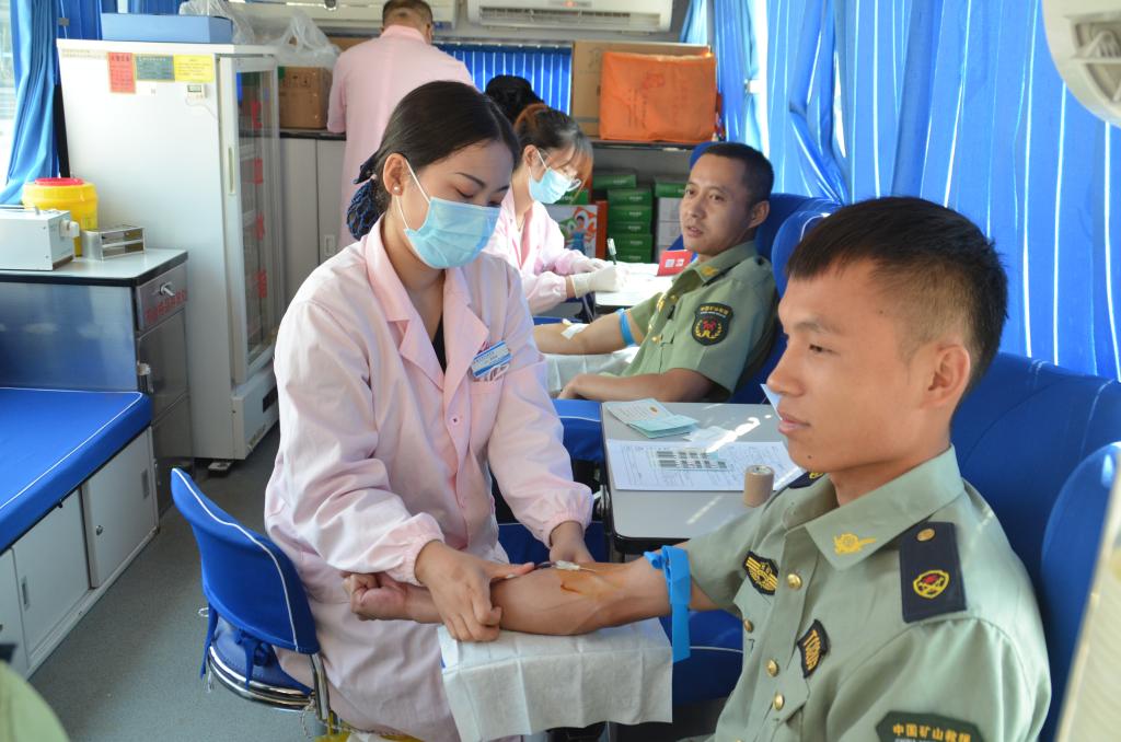 獻血現(xiàn)場到處流淌著感動和溫暖的氣息。獻血者有序填寫完獻血登記表后,在醫(yī)護人員的指導(dǎo)下,完成了填寫獻血單、測量血壓、化驗血樣、確定血型等醫(yī)務(wù)程序,依次進行了獻血?!奥犝f今天有獻血活動,這幾天特別注意休息,能夠用自己的努力幫助有需要的人,心里很高興?!逼渲幸幻茸o指戰(zhàn)員說。一名隊員一邊擼起袖子獻血,還一邊高興地說“適當(dāng)獻血無礙訓(xùn)練和工作生活,有益身心健康?!边€有一兩名年紀(jì)稍長的指戰(zhàn)員一直堅持獻血,目前個人累計獻血已有6000毫升。一些人員在化驗完血樣后因為特殊原因無法獻血,只能遺憾地離開,他們說“如果下次有機會,一定還要獻血?!笨粗磺粺嵫斔瓦M儲血袋,大家紛紛拿著自己的獻血證自豪地離開了現(xiàn)場。
