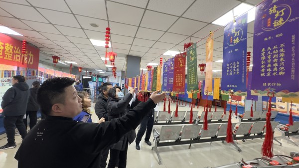 燈謎內(nèi)容豐富多樣,有弘揚(yáng)傳統(tǒng)文化的詩(shī)詞典故、名人軼事,有貼近生活的民俗風(fēng)情、生活竅門,還有安全生產(chǎn)法規(guī)條例,謎題設(shè)置既具趣味性又能“漲知識(shí)”。職工穿梭于燈謎之間,有人認(rèn)真琢磨眉頭緊鎖,有人和身邊的同事熱烈討論,你一言我一語(yǔ),有人恍然大悟“身穿紅衣、常年哨放……這就是滅火器啊”“從低到高,由濃到淡,忽左忽右,跟著風(fēng)走,這不就是‘煙’嗎”。