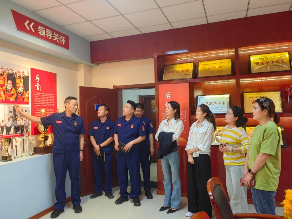 活動(dòng)最后,隊(duì)員與家屬一起參觀隊(duì)榮譽(yù)室,通過展示歷代救護(hù)隊(duì)員攻堅(jiān)克難、嚴(yán)守紀(jì)律的事跡,激發(fā)家屬的榮譽(yù)感與責(zé)任感。參觀過程中,宣傳欄里一組救災(zāi)紀(jì)實(shí)照片吸引了家屬的目光,其中一位家屬駐足凝視著丈夫搶險(xiǎn)救災(zāi)的身影,讓她既心疼又自豪,回憶起那段日夜?fàn)繏斓娜兆?,淚水不禁濕潤了眼眶。