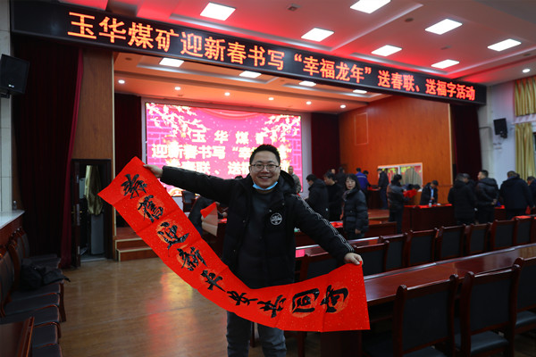 2月1日,臘月二十二,伴隨著句句祝福,玉華礦職工活動中心里翰墨飄香、熱鬧非常,一場迎新春書寫“幸福龍年”送春聯送福字主題活動正在進行。