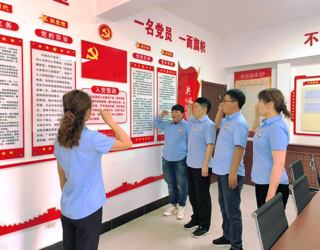 重溫入黨誓詞表心聲。“我志愿加入中國共產(chǎn)黨,擁護黨的綱領,遵守黨的章程,履行黨員義務,執(zhí)行黨的決定,嚴守黨的紀律,保守黨的秘密,對黨忠誠,積極工作,為共產(chǎn)主義奮斗終身,隨時準備為黨和人民犧牲一切,永不叛黨?!边@80個字,承載著一代代共產(chǎn)黨人的奮斗與信仰。全體黨員佩戴黨員徽章、整齊列隊、面向黨旗肅立。胸前的黨徽與面前的黨旗交相輝映,熠熠生輝。大家面對鮮紅黨旗,高舉右手,以整齊劃一的動作重溫入黨誓詞。隨著領誓人洪亮的聲音,大家齊聲莊嚴宣誓,那鏗鏘有力的聲音在室內回蕩,如同激昂的戰(zhàn)歌,傳達出身為共產(chǎn)黨員的強烈自豪感和神圣使命感。重溫入黨誓詞后,全體黨員紛紛表示,在今后的工作中將永葆共產(chǎn)黨員政治本色,繼續(xù)以更加飽滿的激情、更加昂揚的斗志、更加扎實的作風,真抓實干、攻堅克難、砥礪奮進,推動公司各項事業(yè)再上新臺階,貢獻自己的一份力量。
