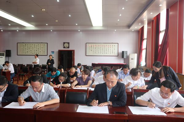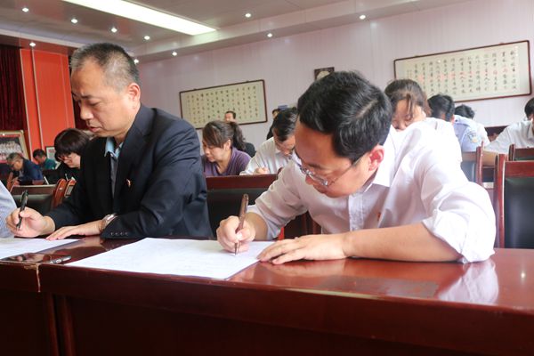 下午兩點(diǎn)半整,該公司全體科級(jí)干部整齊有序坐在五樓會(huì)議室?,F(xiàn)場(chǎng)進(jìn)行試卷拆封,并發(fā)放給“考生”答卷。試卷涵蓋選擇、填空、附加題等多種形式。主要包括習(xí)近平新時(shí)代中國(guó)特色社會(huì)主義思想、組織宣傳黨建基礎(chǔ)知識(shí)等黨員干部應(yīng)知必會(huì)內(nèi)容,同時(shí)也結(jié)合公司實(shí)際設(shè)置了公司經(jīng)營(yíng)發(fā)展知識(shí)點(diǎn)。這次考試從參與度上確保到全體科級(jí)領(lǐng)導(dǎo)參與其中,從保密程度上做到了完全的保密,閉卷考試,而且不允許帶手機(jī)和夾帶。