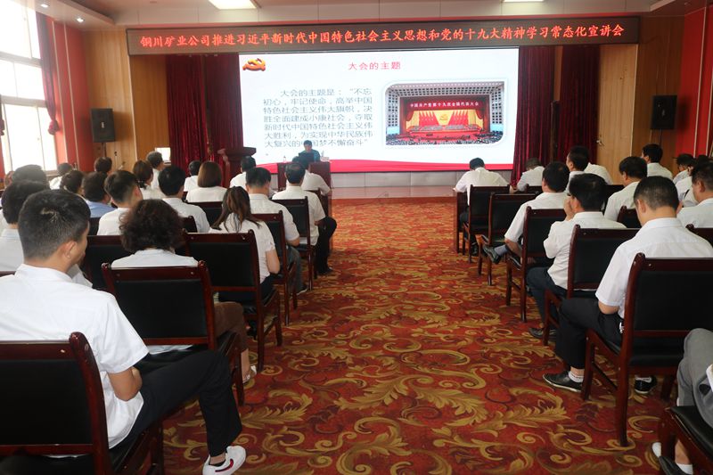 會上,宣講團成員、陳家山礦黨委副書記王礦奇以《解讀十九大、學習新黨章、提高基層黨組織的戰(zhàn)斗堡壘作用》為題,緊緊圍繞習近平新時代中國特色社會主義思想和黨的十九大精神這條主線,從十九大報告的重大意義、《黨章》修改、提升黨組織的戰(zhàn)斗堡壘作用三個內容,結合自己多年來黨建工作的豐富經(jīng)驗做了精彩而生動的講解,宣講內容豐富,主題明確,會場一片安靜,該公司全體黨員干部都靜下心來聆聽這堂思想學習課。
