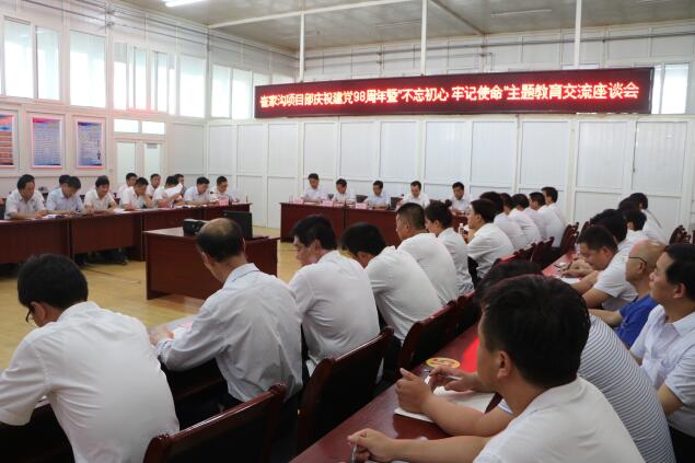 7月1日下午,崔家溝項(xiàng)目部召開慶祝建黨98周年暨“不忘初心 牢記使命”主題教育交流座談會(huì),該項(xiàng)目部領(lǐng)導(dǎo)班子、各副總、各黨支部書記、副書記、副科級(jí)以上黨員干部及納新黨員共60余人參加。
