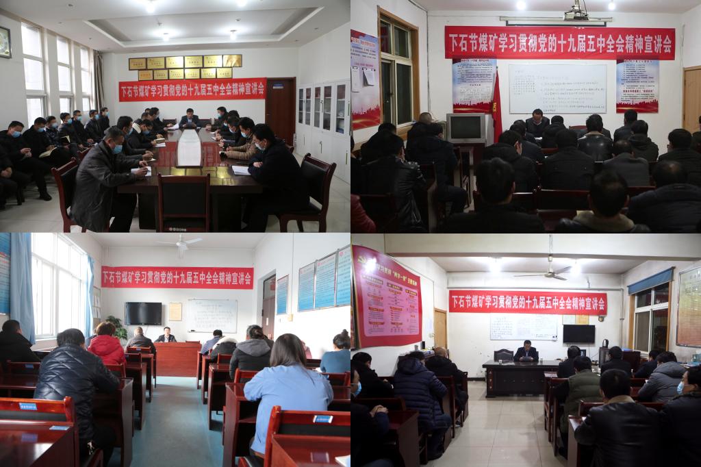 按照公司、礦黨政學(xué)習(xí)貫徹黨的十九屆五中全會(huì)精神總體部署,連日來(lái),下石節(jié)煤礦黨政領(lǐng)導(dǎo)嚴(yán)格按照公司、礦關(guān)于深入學(xué)習(xí)貫徹十九屆五中全會(huì)精神宣講工作相關(guān)要求,采取分時(shí)段,分批次,走進(jìn)基層黨建聯(lián)系點(diǎn),為基層黨支部的廣大黨員干部職工送來(lái)了一場(chǎng)場(chǎng)主題鮮明,實(shí)質(zhì)深刻,層次嚴(yán)謹(jǐn)、內(nèi)涵豐富的學(xué)習(xí)貫徹十九屆五中全會(huì)精神宣講會(huì)。