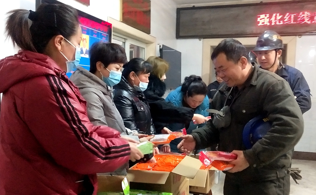 一大早,該礦工會(huì)就將提前準(zhǔn)備好的面包、麻花、火腿、酸奶、鞋墊等節(jié)日禮品送到每位升入井職工手中,真正把企業(yè)的關(guān)懷和溫暖送到職工的心坎上,同時(shí)祝福礦工兄弟們新春快樂,幸福安康,提醒大家為了企業(yè)的安全生產(chǎn)和家庭的幸福美滿,一定要牢記安全,杜絕“三違”……一聲聲貼心的祝福,一句句深情的叮囑,讓職工們深受感動(dòng),紛紛表示表示一定聽從指揮,按章作業(yè),認(rèn)真完成好本職工作,為礦井安全發(fā)展貢獻(xiàn)自己的一份力量?;顒?dòng)現(xiàn)場(chǎng),不時(shí)傳來(lái)一陣陣歡快的笑聲和新年的問候,處處洋溢著濃濃的節(jié)日氣息。