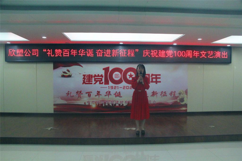 近日,欣塑公司舉辦“禮贊百年華誕 奮進(jìn)新征程”慶祝建黨100周年文藝演出活動(dòng)。熱烈慶祝中國共產(chǎn)黨成立100周年,回顧黨的百年光輝歷程,唱響新時(shí)代主旋律,展現(xiàn)廣大干部職工愛黨愛國情懷和團(tuán)結(jié)拼搏、昂揚(yáng)向上的精神風(fēng)貌和愛黨愛國情懷。