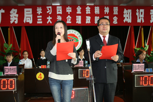 日前,局黨委宣傳部牽頭,先后在全局24個(gè)單位,分王石凹礦、下石節(jié)礦和供應(yīng)處三個(gè)分賽場,舉辦了局學(xué)習(xí)宣傳黨的十七屆四中全會精神暨“三大治企理政新理念”現(xiàn)場知識競賽選拔賽。本次競賽,以“學(xué)習(xí)宣傳黨的十七屆四中全會精神暨局“三大治企理政新理念”為主題,分十七屆四中全會、新中國偉大成就、局情礦史、局“三大治企理政新理念”四部分內(nèi)容進(jìn)行比賽。經(jīng)過三場激烈的預(yù)賽,王石凹礦、一五三廠、鴨口煤礦有限責(zé)任公司、下石節(jié)礦、玉華礦、鐵運(yùn)公司、中心醫(yī)院、局機(jī)關(guān)和供應(yīng)處9個(gè)單位入圍決賽。據(jù)悉,總決賽將于11月11日在銅川煤業(yè)賓館舉行。